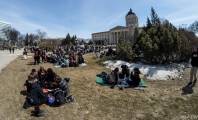 20.04 парк перед Mанитобским парламентом весь в дыму, да, наверно, по всей стране у законодательных зданий стоит дым коромыслом. В 4:20 после полудня вся Северная Америка закурит 20 апреля. Европа, Азия тоже дымила в свои 16:20, в общем весь мир отметил