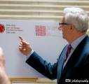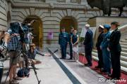 Cпециальный посланник по военным делам Канады Deanne Crothers представила сегодня макет нового государственного конверта на парадной лестнице Законодательного Здания Манитобы.