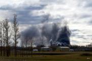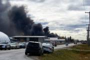 В индустриальном парке Трансконы случился пожар, загорелся асфальтовый завод Pounder Emulsions примерно в 10 часов утра 22 октября. Клубы черного дыма стояли над районом. Полиция оцепила большой квадрат площади по улицам от Gunn до Springfield и от периметра до Plessis.