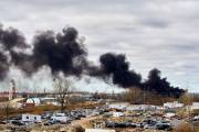 Причиной пламени послужил взрыв емкости с химическим составом для покрытия асфальта. Рядом располагались два ряда вагонов с взрывоопасными химикатами. Вместе с дымом в воздух выбрасываются токсичные газы, советуют не выходить из помещений и закрыть все окна, двери.