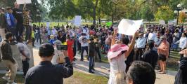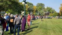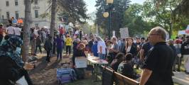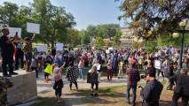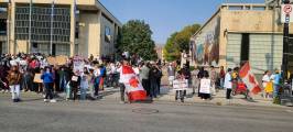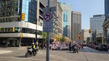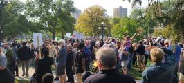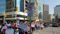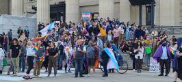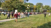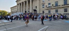 В Виннипеге люди собрались на Форксе и у мэрии, первые прошлись по Бродвею, вторые по Мэйну и встретились у парламента, на ступеньках которых проходил анти протест сообщества LGBTQ2S+ .