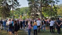 Полиция не пустила людей к этой группе, а направила за парламент, где и прошел митинг.